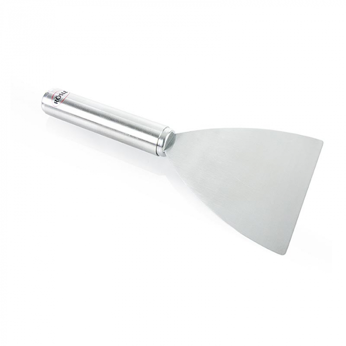 Racleta cu lama flexibila, muchie dreapta, prindere ferma. Pentru intoarcerea alimentelor prajite si pentru curatarea usoara a tuturor tipurilor de placi de gratar, de exemplu gratare Teppanyaki. Complet din otel inoxidabil. Se poate spala in masina de spalat vase. Date tehnice: lungime: 23 cm, latime: 10 cm, inaltime: 2,5 cm, greutate: 0,2 kg, material: otel inoxidabil, suprafata: mat, textura: otel inoxidabil mat, lungime maner (cm): 12,0, diametru maner (mm) ): 19, lungime utila (cm): 11,0, dimensiunea partii functionale (cm): 11, pentru contactul cu alimente: da
