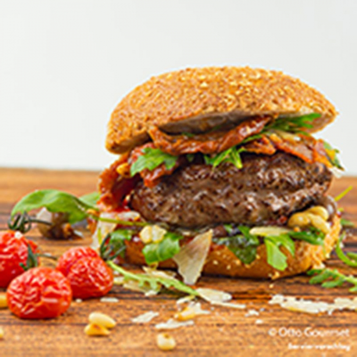 Carnea pentru acest Burger Chianina Steakhouse Dry-Aged provine de la cea mai veche rasa de animale de carne din lume - bovinele Chianina certificate IGP toscane.