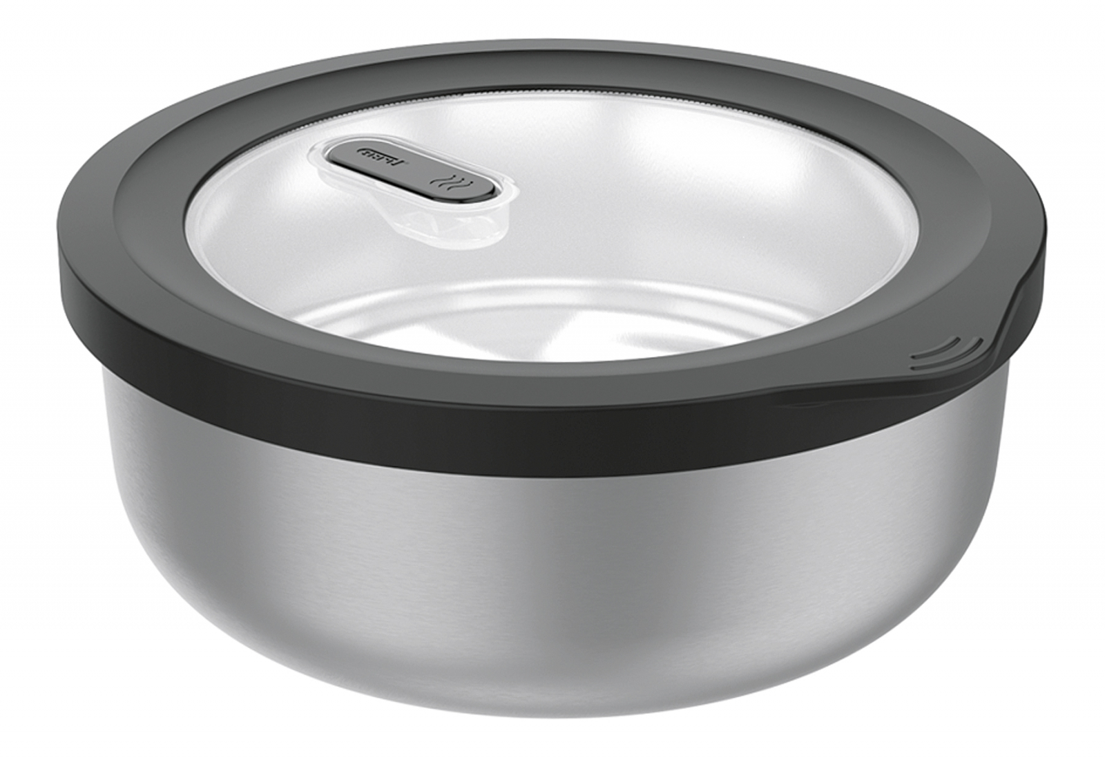 Otel inoxidabil/plastic (PP), (TPE), etans, etans si rezistent la aroma, potrivit pentru cuptorul cu microunde datorita supapei speciale din capac, rezistent la caldura pana la 300 C (fara capac) cu capac pana la 100 C, rezistent la frig pana la -20 C, stivuitor si insarator, cod QR imprimat cu laser pentru controlul stocului prin aplicatie (numai pentru Android) se poate spala in masina de spalat vase negru / argintiu 2 l, 20,6 cm, H 9,1 cm