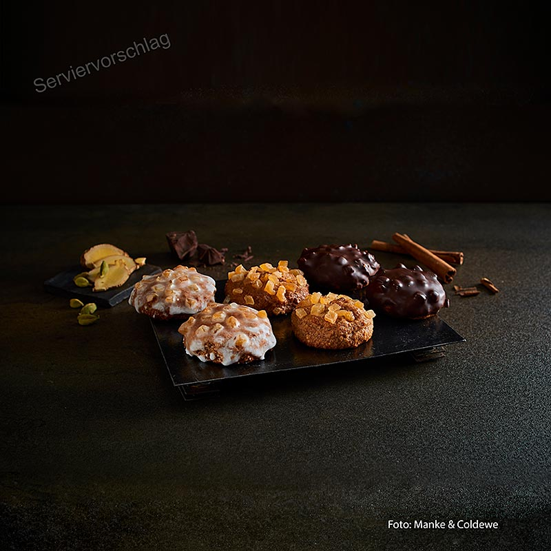 Mini Original Elisen. Ingrediente: MIGUDALE, ALBUS DE OU, zahar, MARTIPAN (52% MIGUDALE, zahar, apa), ALUNE, miere, coaja de portocala (cu sirop de glucoza-fructoza, zahar, acid citric) si fructe de cedru confiate (cu glucoza). -fructoza- sirop, zahar, acid citric), nuci, dulceata de caise (cu sirop de glucoza-fructoza, zahar, acid citric, pectina), condiment turta dulce, agenti de crestere: carbonat de sodiu, fosfat disodic, amidon de porumb. Mini Elise Ghimbir: Ingrediente: MIGUDALE, ALBUS DE OU, zahar, MARTIPAN (52% MIGUDALE, zahar, apa), ghimbir confiat, zaharat), ALUNE, miere, NUCA, gem de caise (sirop de glucoza-fructoza, 35% caise, sirop de glucoza) , pectina, acid citric), condiment turta dulce, agenti de crestere: carbonat de sodiu, fosfat disodic, amidon de porumb. Malis'chen: Ingrediente: Migdale, albus de ou, zahar, martipan (52% migdale, zahar, apa), ALUNE, miere, coaja de portocala (cu sirop de glucoza-fructoza, zahar, acid citric) si fructe de cedru confiate (cu glucoza). -fructoza- sirop, zahar, acid citric), dulceata de caise (cu sirop de glucoza-fructoza, zahar, acid citric, pectina), condiment turta dulce, agenti de crestere: carbonat de sodiu, fosfat disodic, amidon de porumb. Glazura de ciocolata: zahar, cacao, unt de cacao, LECITINA DE SOIA, vanilie. Glazura: zahar, sirop de glucoza, acid citric, agar agar. Ciocolata alba: unt de cacao, zahar, lapte praf integral, aroma naturala de vanilie. Proprietati: fara gluten.